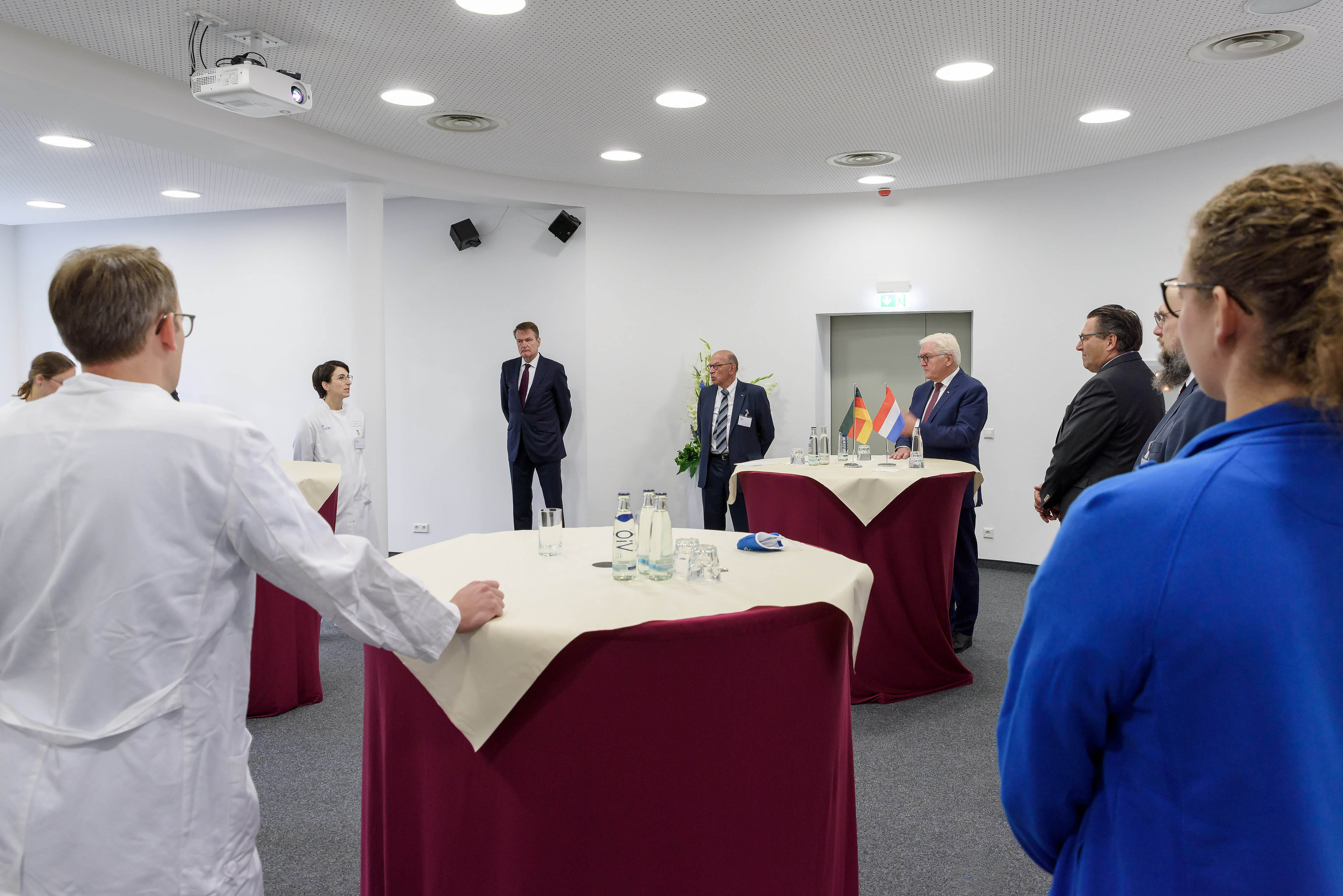 Bundespräsident Steinmeier und Botschafter Kingma tauschten sich im An-schluss noch mit dem Leiter des Instituts für Molekulare Virologie am UKM, Prof. Dr. Stephan Ludwig, zu den aktuellen Entwicklungen rund um das SARS-CoV-2-Virus aus.