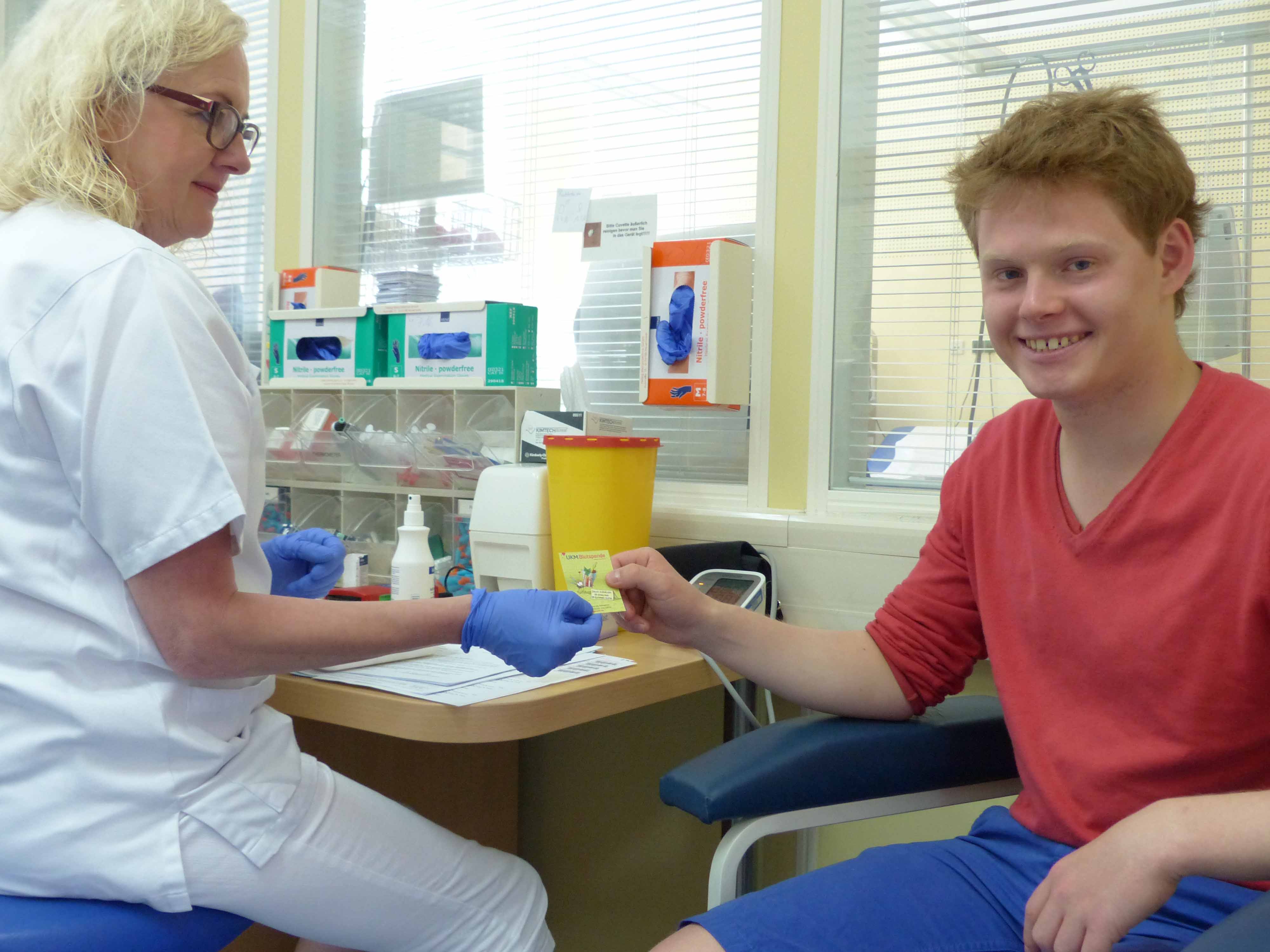 Eigentlich ist Martin Reichmuth noch recht neu in Münster. Der BWL-Student ist gerade im zweiten Semester. „Neben all der Lernerei muss ich deshalb natürlich auch noch das Nachtleben hier kennenlernen“, grinst er. „Deswegen war die unter Studenten legendäre ‚JuWi-Party‘ der Juristen und Wirtschaftswissenschaftler für mich natürlich Pflicht.“ Doch statt sich an diesem Abend einfach nur zu amüsieren, traf er bei der Party Mitarbeiter der UKM Blutspende (Universitätsklinikum Münster), die Flyer und Werbematerialien unter den Gästen verteilten. Der 21 Jahre alte Hamburger zögerte nicht und half – statt zu feiern - persönlich mit: „Als ich 16 war, ist eine Freundin von mir an Leukämie gestorben. Das hat mich nachhaltig geprägt, weil ich nun nicht mehr vergessen kann, wie wichtig so etwas scheinbar Selbstverständliches wie Blut sein kann. Seitdem bin ich in meiner Heimatstadt Hamburg regelmäßig zum Blutspenden gegangen.“ Die Mitarbeiter der UKM Blutspende freuten sich natürlich über das außergewöhnliche Engagement Reichmuths bei der „JuWi-Party“. Doch damit nicht genug: Nur wenige Tage nach seinem Einsatz zog es den Studenten direkt zur UKM Blutspende im Gebäude an der Domagkstraße. „Ich finde, jetzt, wo ich in Münster angekommen bin, ist es an der Zeit, hier Blut zu spenden. Schließlich habe ich hier meinen Lebensmittelpunkt.“ Sprach’s und begab sich – nach der ärztlichen Untersuchung – kurzentschlossen zum Blutspenden. Dank der laufenden Sommeraktion wurde er hier für seinen Einsatz zusätzlich belohnt: Nach dem Spenden erhielt er als Dankeschön einen der beliebten Gutscheine für einen Gratis-Cocktail im Enchilada. Wie er haben alle, die noch bis Ende August Blut spenden, die Wahl zwischen einem Gutschein der drei Partner der diesjährigen „Sommer in Münster“-Aktion (Enchilada, Raphaels Eis und das DJK Sportbad Coburg). Allein im Juli waren es schon über 1.600 Blutspender. „Eine klasse Halbzeit-Bilanz!“, findet Priv.-Doz. Dr. Georg Geißler, Leiter des Instituts für Transfusionsmedizin und Transplantationsimmunologie am UKM. „Die Gutscheine unserer Unterstützer der Sommeraktion sind ein toller Anreiz. Das sonst übliche ‚Sommerloch‘ bei den Spenden ist in diesem Jahr ausgeblieben.“ Und auch Martin Reichmuth meint: „Die Gutscheine sind sicher ein toller Bonus. Sie sind aber trotzdem nicht das, was mich hauptsächlich motiviert. Wie wichtig Blutspenden ist, weiß man erst, wenn man persönlich damit konfrontiert wurde, was es bedeutet, kein gesundes Blut zu haben.“